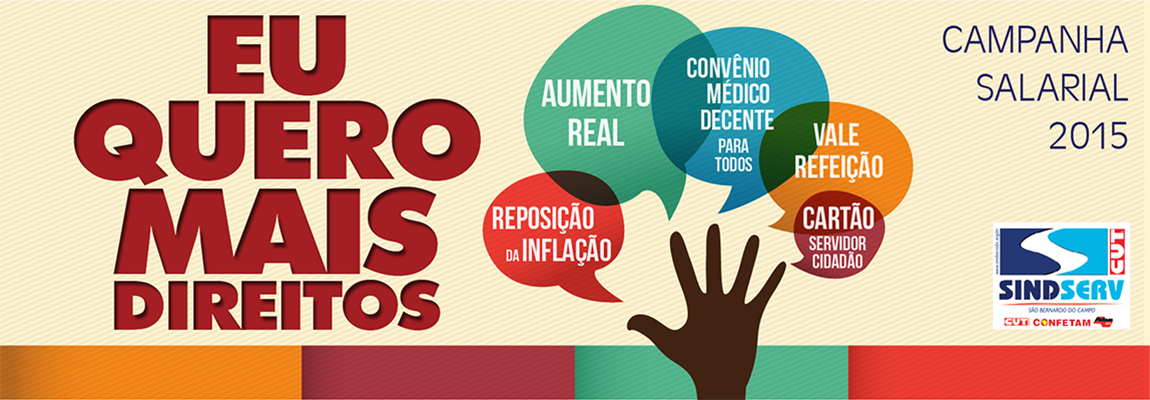 O SINDSERV convoca todos os trabalhadores e trabalhadoras para a assembleia de discussão e aprovação da pauta de reivindicações da Campanha Salarial de 2015, no dia 12 de fevereiro, às 18h30, na nossa sede.