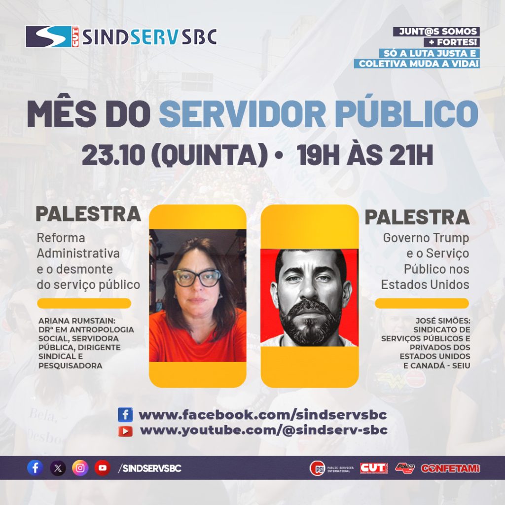 No Mês do Servidor Público, o SINDSERV-SBC convida todas e todos para participarem da atividade especial desta semana: